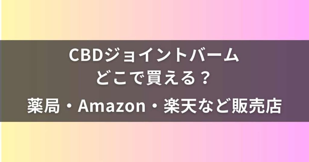 【2025年最新】CBDジョイントバームどこで買える?薬局・Amazon・楽天など販売店を調査