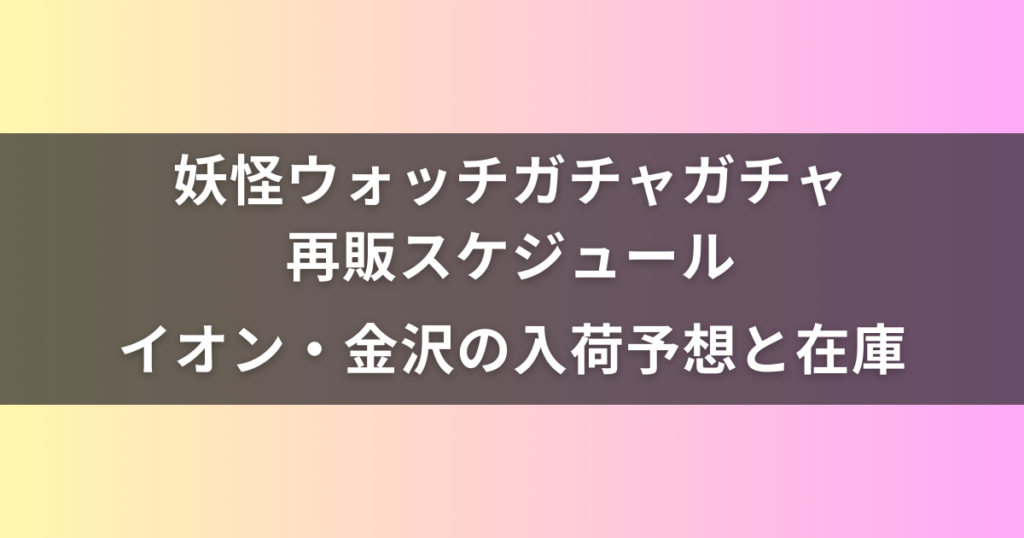 【2025年11月最新】妖怪ウォッチガチャガチャ再販スケジュール!イオン・金沢の入荷予想と在庫チェック方法まとめ