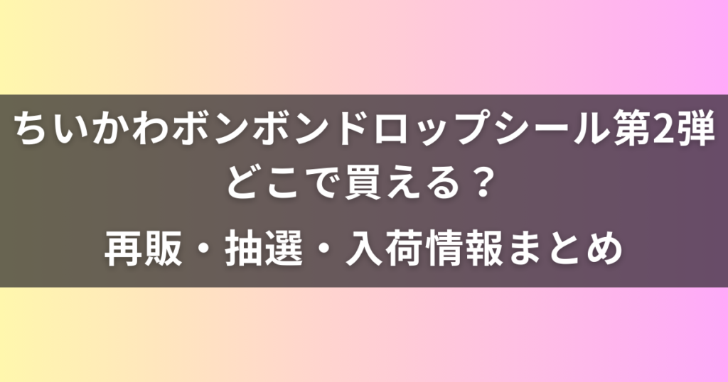 ちいかわファンの皆さん、こんにちは。ぷっくりとした立体感が可愛い「ちいかわ ボンボンドロップシール 第2弾」は、2025年冬も高い人気が続いており、品薄状態が常態化しています。 「どこで買える?」「再販はある?」「抽選の最新情報を知りたい」 とい... -