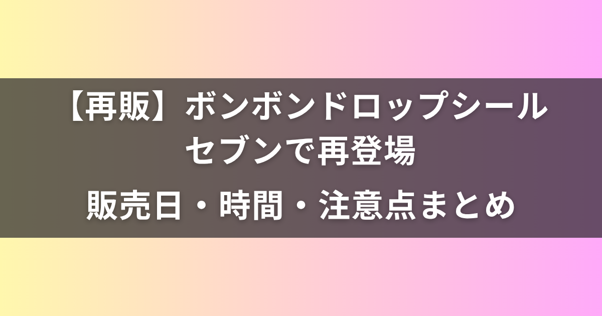 ボンボンドロップシールの最新の再販情報(セブンイレブンの入荷日や購入制限など)を知りたい方は、こちらの速報記事もあわせてご覧ください。